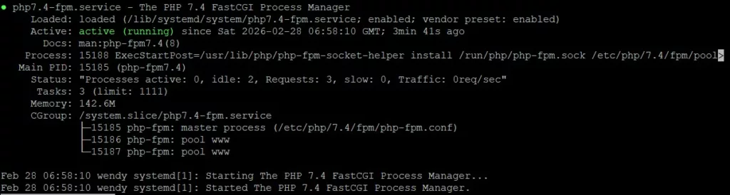 After executing all the commands above, I checked if PHP-FPM is running properly: